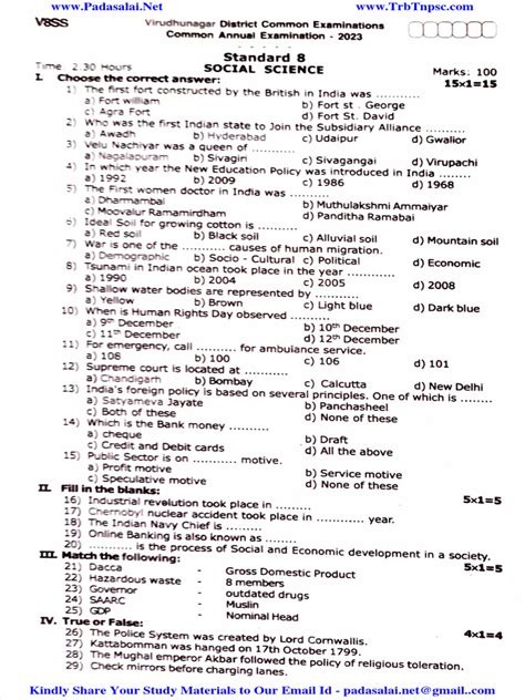 • School and Teacher Resources: Your school might have a collection of past question papers in its library or resource center. Teachers often provide these materials to students for practice. Don’t hesitate to ask your social studies teacher if they have the 8th Class Social SA1 question paper from 2023.