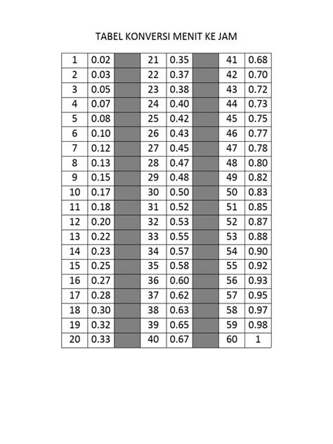 1. Ingat Kelipatan 60: Hafalin aja beberapa kelipatan 60 yang sering muncul. Misalnya, 60 menit = 1 jam, 120 menit = 2 jam, 180 menit = 3 jam. Kalau angkanya di antara kelipatan itu, berarti jamnya adalah kelipatan yang lebih kecil, dan sisanya tinggal dihitung.