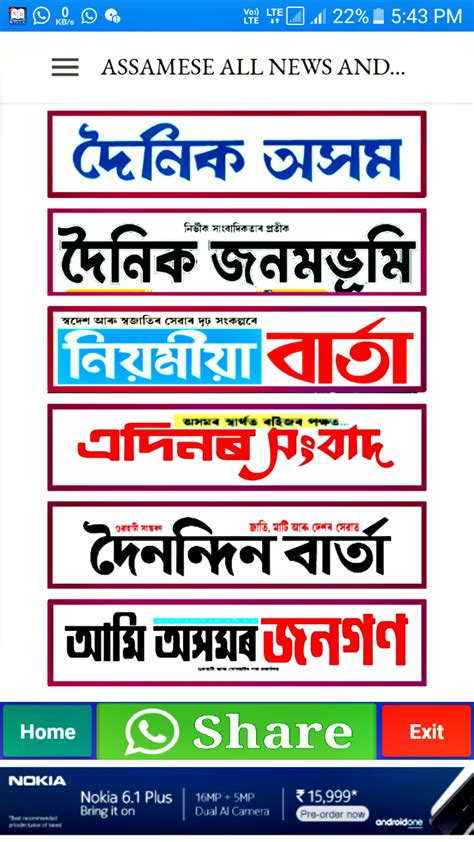 • Newspapers : If you’re more of a reader, newspapers are a great choice. Publications like Asomiya Pratidin , Amar Asom , and Niyomiya Barta provide detailed coverage of local, national, and international news. Plus, you can usually find them online too!