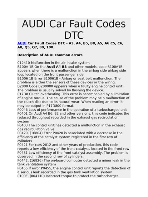 Audi 01298: Understanding The DTC Code