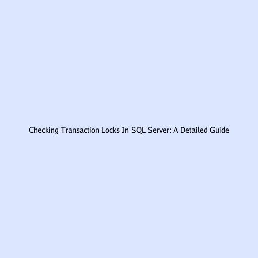 Checking Transaction Locks In SQL Server: A Detailed Guide