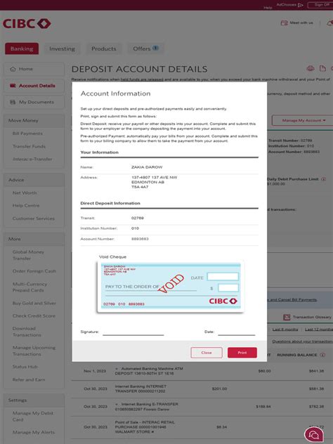 • Obtaining a Direct Deposit Information Sheet from CIBC: Some employers or government agencies might accept a Direct Deposit Information Sheet. You can often print this directly from your CIBC Online Banking or mobile app, or request one from a CIBC branch. This sheet will contain all the necessary banking information, including your account and transit numbers, without needing a physical cheque.