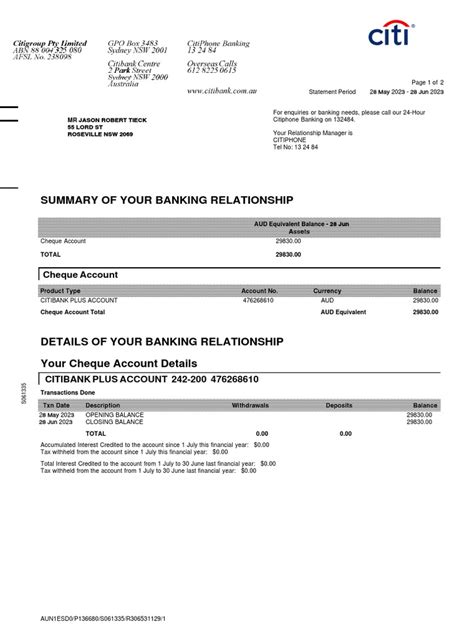 Alright guys, let’s get down to business and dissect what you’ll actually find on your Citibank statement . First off, the basics. You’ll see your account summary , which is pretty straightforward. This includes your account number (don’t share this with just anyone!), the statement period (super important for knowing which transactions are covered), and your opening and closing balances. The closing balance is basically what you had in your account at the end of the statement period. Easy peasy, right? Then comes the juicy part: your transactions . This is where the magic happens, or where you might scratch your head a bit. Each transaction will usually have a date, a description (this can sometimes be cryptic, we’ll get to that!), and the amount. For credit cards, you’ll see payments, purchases, fees, and interest charges. For checking or savings accounts, it’ll be deposits, withdrawals, checks cleared, and any automatic payments or transfers. Understanding transaction details is key. Sometimes the merchant name is abbreviated or just a string of numbers. If you see something you don’t recognize, don’t panic! A quick search online for the merchant name, or sometimes even the transaction code, can often clear things up. Remember, your statement is a historical record, so it’s a snapshot of your financial activity over a specific time. Pay attention to any fees and interest charges . Citibank, like any bank, charges fees for certain services or penalties, and interest accrues on credit card balances. Knowing these helps you budget better and avoid unexpected costs. Your statement is your best friend in spotting these things early. It’s all about giving you control and knowledge. We’ll also touch upon how to access your statements online, because who even uses paper anymore, right? This section is all about equipping you with the knowledge to navigate the core components of your statement without feeling overwhelmed. It’s your financial story, laid out for you to read!