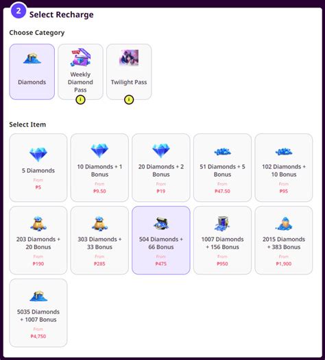 - Choose Your Diamond Package : Select the diamond package you want to purchase.
