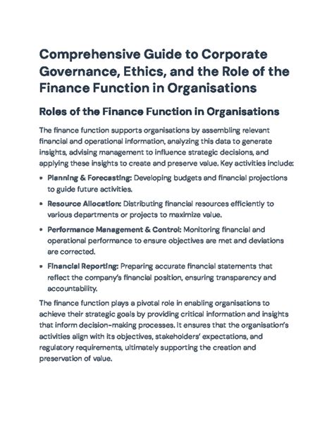 Hey guys! Ever wondered how companies are actually run and how the money side of things is handled? Well, buckle up because we’re diving deep into the world of corporate governance and the finance department . Think of it as the backbone and the engine room of any successful organization. Let’s break it down in a way that’s super easy to understand.