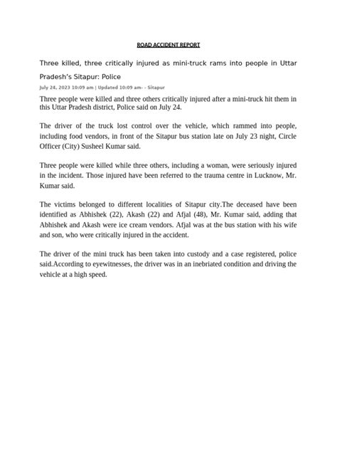 When we talk about understanding the essence of a news report , especially for topics as critical as a road accident , we’re really talking about a specific kind of storytelling. Unlike creative writing, a news report is purely factual, objective, and timely. Its primary purpose, folks, is to inform , educate , and sometimes even warn the public about events that have happened. For Class 10 students , grasping this fundamental distinction is key to writing effective reports. You’re not just narrating; you’re acting as a conduit for information, delivering the cold, hard facts without personal opinions or biases. Think of yourselves as diligent detectives, gathering evidence and presenting it straightforwardly. The core of any good news report, particularly one on a road accident , lies in answering the famous 5 W’s and 1 H : Who, What, When, Where, Why, and How . These questions are your best friends, guiding you to capture all the essential details that your readers need to know. For instance, in a road accident news report , ‘Who’ would involve the people involved (victims, drivers, witnesses), ‘What’ is the accident itself (collision type, severity), ‘When’ is the date and time, ‘Where’ is the specific location, ‘Why’ could be the cause (reckless driving, bad weather), and ‘How’ describes the sequence of events. Every single paragraph , especially the crucial opening one, should strive to address these elements as much as possible. This approach ensures your report is comprehensive and leaves no critical stone unturned. The goal is to provide a complete picture of the incident, allowing readers to understand the gravity and context of the accident details . Moreover, a news report must be timely ; people want to know about recent events, so the information needs to be current. And perhaps most importantly, it must be credible . This means relying on verified sources – police statements, official reports, eyewitness accounts – rather than hearsay or speculation. When crafting your Class 10 news report , always double-check your facts. Remember, an accurate report not only informs but also builds trust with your audience. So, for every road accident news report you write, aim for clarity, accuracy, and a structured presentation that answers the fundamental questions, providing valuable insights into the event and its implications for road safety and the community at large. This disciplined approach to writing a news report will not only help you excel in your academics but also lay the foundation for critical thinking and effective communication skills that are vital in the real world. Seriously, guys, getting this right is a superpower!