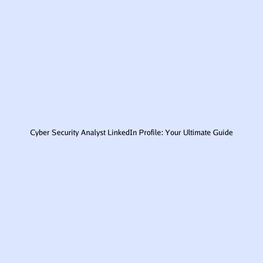 Cyber Security Analyst LinkedIn Profile: Your Ultimate Guide