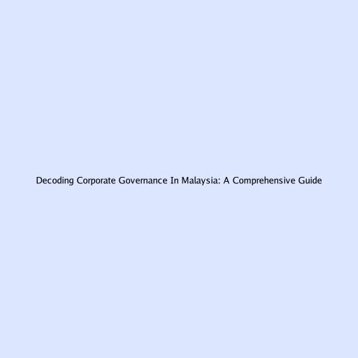 Decoding Corporate Governance in Malaysia: A Comprehensive Guide