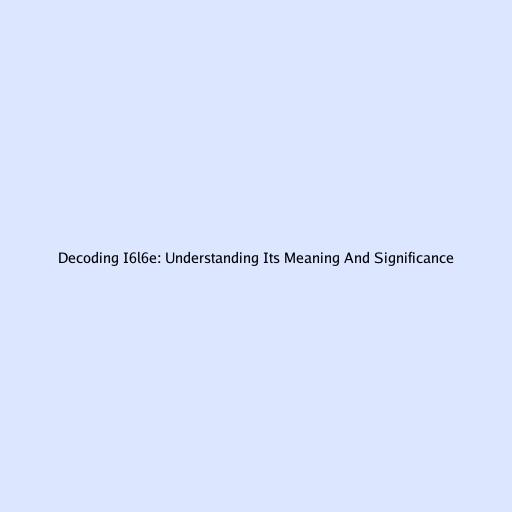 Decoding I6l6e: Understanding Its Meaning And Significance