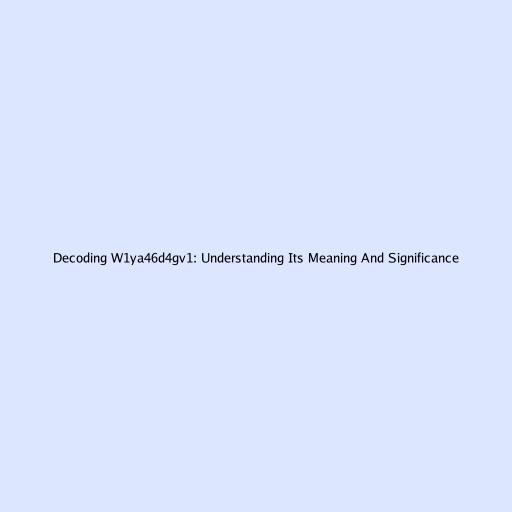 Decoding W1ya46d4gv1: Understanding Its Meaning And Significance