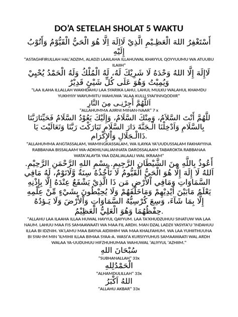 Oke, guys, sekarang kita masuk ke bagian yang paling ditunggu-tunggu: bacaan doanya! Nah, ada beberapa bacaan doa setelah sholat 5 waktu yang umum banget diamalkan sama umat Muslim. Nggak perlu khawatir kalau belum hafal semua, yang penting niatnya tulus dan berusaha buat belajar. Yuk, kita mulai satu per satu: