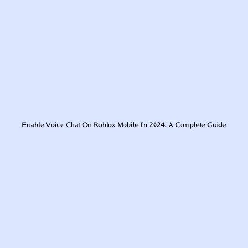 Enable Voice Chat On Roblox Mobile In 2024: A Complete Guide
