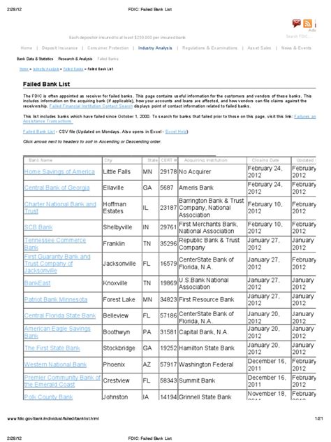 Navigating the FDIC website is generally straightforward. Look for keywords like “Failed Banks,” “Bank Failures,” or “Resolution Information.” The site is designed to be user-friendly, providing various search and filter options to help you find the specific information you need. Once you locate the failed bank list, you’ll typically find details such as the bank’s name, location, date of failure, and the acquiring institution (if any). This information is presented in a clear and organized manner, allowing you to easily review the history of bank failures in the U.S. Additionally, the FDIC website offers various resources and publications that provide deeper insights into the causes and consequences of bank failures, as well as the FDIC’s role in protecting depositors and maintaining financial stability. By exploring these resources, you can gain a more comprehensive understanding of the dynamics of the banking industry and the measures taken to safeguard the financial system.