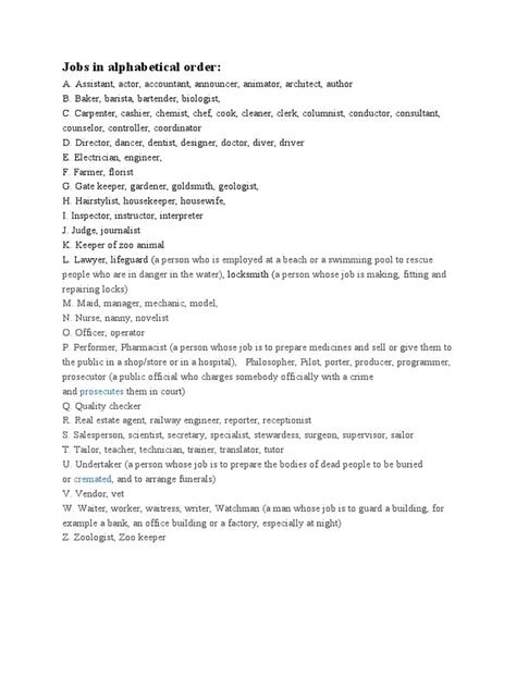 Alright, let’s get real here. When you’re scrolling through job boards, it’s easy to get lost in a sea of titles and companies. Jobs in alphabetical order might not be the first thing that comes to mind when you think of cutting-edge job search strategies, but hear me out. This method offers a unique perspective. Instead of just looking at what’s trending or what pops up first, arranging your potential opportunities alphabetically forces you to engage with a wider range of companies and roles you might otherwise overlook. It’s like going through a phone book – you see everything . This comprehensive view can be incredibly valuable. For instance, imagine you’re looking for marketing roles. If you just search broadly, you might see a lot of the same big names. But if you’re scanning alphabetically, you might stumble upon a fantastic, lesser-known company in the ‘A’ or ‘B’ section that offers exactly the kind of role you’re after, perhaps with a more personalized work environment or unique company culture. It encourages you to broaden your horizons and consider options you might not have actively searched for. Furthermore, for those who appreciate structure and organization, this method provides a clear, systematic way to track your applications and research. It helps you avoid the rabbit hole of endless scrolling and gives you a defined path to follow. It’s about systematic exploration, ensuring no stone is left unturned. This structured approach can significantly reduce decision fatigue, a common side effect of extensive job hunting. When you have a list organized and can systematically go through it, each step feels more manageable and less overwhelming. You’re not just reacting to what appears; you’re proactively engaging with a curated list, making informed decisions at each step. This method is particularly useful when you have a general idea of the industries or types of roles you’re interested in but want to ensure you’re considering all possible employers within those sectors.