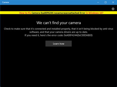 Hey guys! Running into the frustrating “We can’t find your camera” error (error code 0xa00f4244) on your Windows 10 machine? Don’t worry; it’s a pretty common issue, and we’re here to help you troubleshoot it. This error usually pops up when Windows can’t detect or access your camera, leaving you unable to use it for video calls, recordings, or any other camera-dependent apps. Let’s dive into the possible causes and, more importantly, how to fix them!