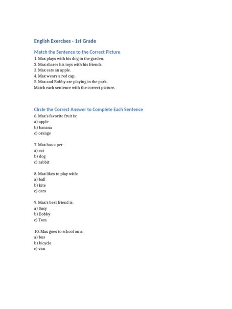 Hey guys! Are you looking for some fun and engaging English exercises for your 1st grader? You’ve come to the right place! Learning English can be an exciting adventure, especially when it’s filled with games, colorful pictures, and interactive activities. This article is packed with ideas and resources to make learning English a blast for your little one. We’ll cover everything from basic vocabulary and simple sentences to reading comprehension and fun writing prompts. So, grab your pencils, open your minds, and let’s dive into the wonderful world of English!