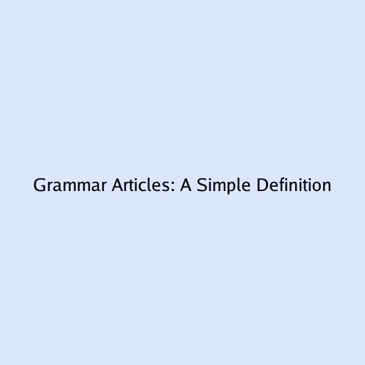 Grammar Articles: A Simple Definition
