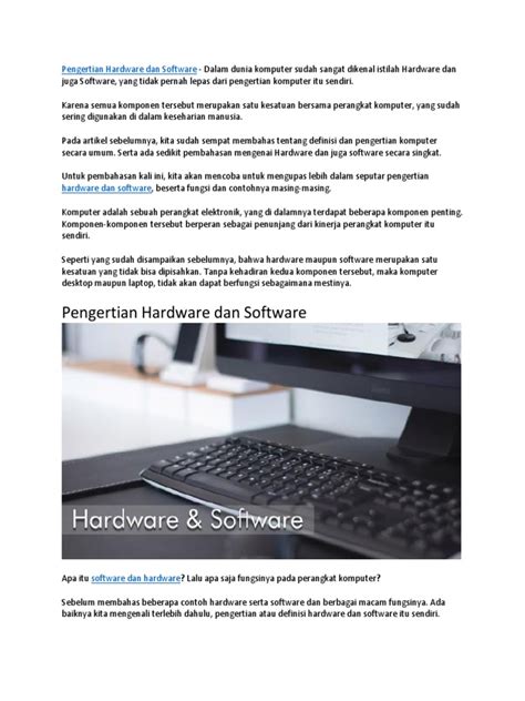 Hey guys! Pernah gak sih kalian bertanya-tanya, sebenarnya apa sih hardware dan software itu? Nah, kali ini kita bakal bahas tuntas mengenai dua komponen penting dalam dunia komputer ini. Tanpa mereka, komputer atau smartphone yang kalian gunakan sehari-hari gak akan bisa berfungsi dengan baik. Yuk, simak penjelasannya!