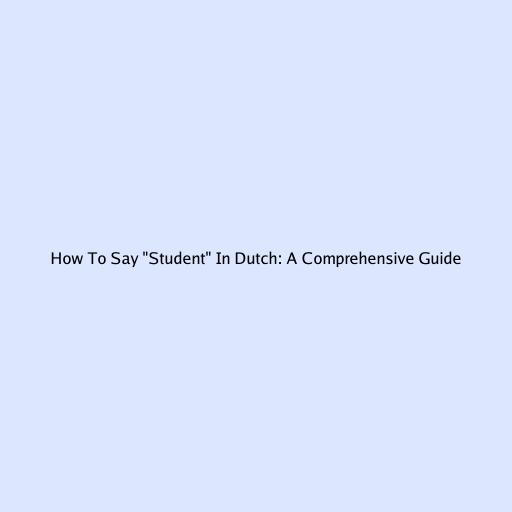 How to Say “Student” in Dutch: A Comprehensive Guide