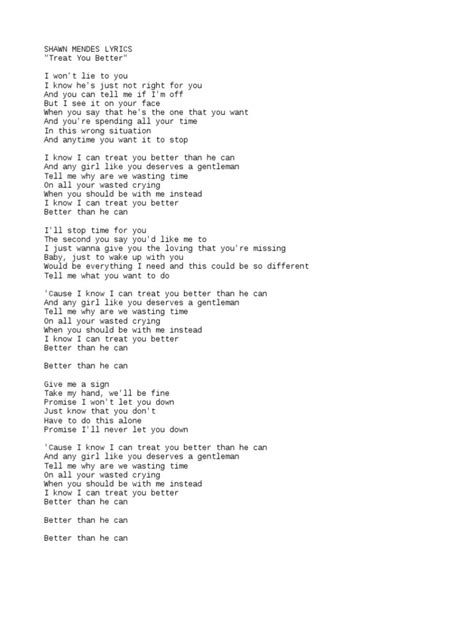 Now, let’s talk about the part that gets stuck in your head and heart: the chorus of “I Know You Treat Me Better” lyrics . This is the epicentre of the song, the main message delivered with full force. When the chorus hits, it’s a palpable shift. The verses might have been filled with doubt or longing, but the chorus is pure, unadulterated certainty. It’s a declaration, a celebration, and a confident statement of fact. The phrase “I know you treat me better” isn’t just a passive observation; it’s an active acknowledgment of the positive change. It signifies a moment of profound realization where the singer understands their own value and recognizes that they have found someone who mirrors that value back to them. This chorus is incredibly empowering. It suggests that the singer isn’t just hoping for better treatment, they are experiencing it and knowing it to be true. This knowledge brings a sense of peace, security, and immense joy. It’s the antithesis of the doubt and insecurity often expressed in the verses. The repetition of this central theme in the chorus reinforces its importance. It’s the anchor of the song, the takeaway message that resonates long after the music stops. Think about the feeling of finally being seen and appreciated for who you truly are. That’s the energy this chorus radiates. It’s about finding someone who doesn’t just love you, but who actively enhances your life, who brings out the best in you, and who makes you feel like a priority. This isn’t just about being treated well; it’s about being treated exceptionally well, in a way that feels transformative. The lyrics often use strong, affirmative language to convey this sense of unwavering belief. It’s a message of hope fulfilled, a testament to the fact that good, genuine love and appreciation do exist. This powerful chorus serves as a beacon, not only for the singer but for anyone listening who might be yearning for similar validation. It’s a reminder that we deserve this kind of positive treatment and that it is possible to find it. It’s the emotional climax, the triumphant moment where past struggles give way to present happiness and future optimism. It’s the part that makes you want to sing along at the top of your lungs because it speaks to a universal desire for genuine connection and love.