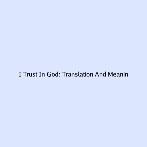 I Trust in God: Translation and Meaning
