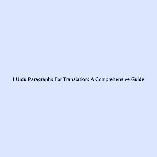 I Urdu Paragraphs for Translation: A Comprehensive Guide