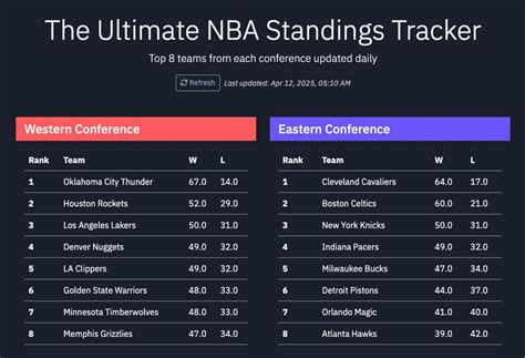 • Win-Loss Record (W-L) : The foundation of any standings. It directly reflects a team’s overall performance. A higher win total is always better.