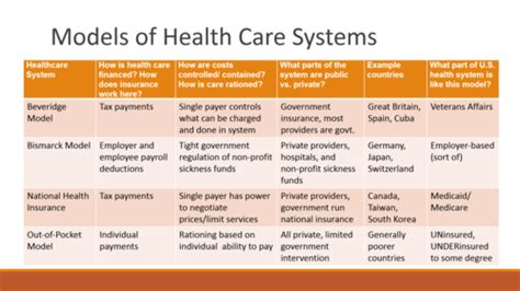 Next, we have the Bismarck Model , which is common in countries like Germany, France, and Japan. This model uses a social insurance system, where both employers and employees contribute to health insurance funds. These funds then pay for healthcare services. Unlike the Beveridge Model, healthcare providers are typically private. However, the government regulates the costs. The Bismarck Model aims to provide universal coverage while allowing for some competition and choice. The good things about this model? It’s often associated with high-quality care and a wide range of services. The not-so-good things? It can be complex to manage, and costs can be high if not properly controlled. There are also models like the National Health Insurance Model , which combines elements of both Beveridge and Bismarck. Canada is a good example of this, where the government is the primary payer, but healthcare providers are largely private. Then there’s the Out-of-Pocket Model , where people pay for healthcare directly. This is common in many developing countries, and it means that access to healthcare depends on your ability to pay. It’s a tough situation for those with limited resources. These models aren’t mutually exclusive, and some countries use a hybrid approach, combining elements from different models. It’s a complex and ever-evolving landscape, with each country trying to find the best way to balance cost, quality, and access. The key takeaway? There’s no perfect system, and what works well in one country might not work in another. It’s all about context, values, and the specific needs of the population.