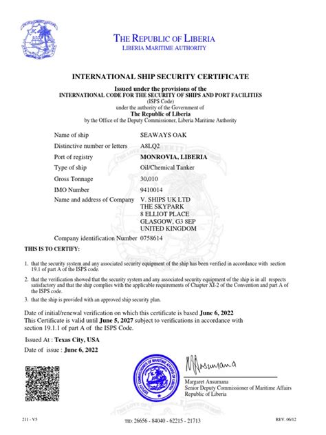 One of the primary objectives of the ISPS Code and the ISSC is to prevent acts of piracy and terrorism against ships and port facilities. By requiring rigorous security assessments, the development of comprehensive security plans, and the implementation of robust security measures, the code aims to make vessels less vulnerable targets. This includes measures like enhanced surveillance, access control, secure cargo handling, and the ability to respond quickly to security incidents. The ISSC is a tangible representation of a ship’s commitment to these preventive measures, assuring other nations and port authorities that the vessel is taking its security responsibilities seriously. It’s about making the seas safer for everyone involved in trade and travel.