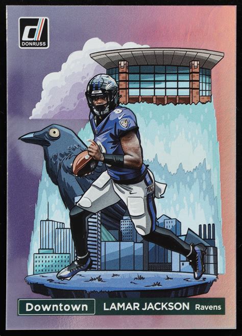 Beyond the visual appeal, the card’s value is also driven by Lamar Jackson’s performance during the 2020 season. As one of the most electrifying players in the NFL, Jackson’s cards are always in high demand. The Downtown series, with its limited print run and distinctive design, adds an extra layer of collectibility. The combination of a star player and a unique card design creates a perfect storm for value appreciation. Collectors are drawn to the card not only for its aesthetic qualities but also for its potential as an investment.