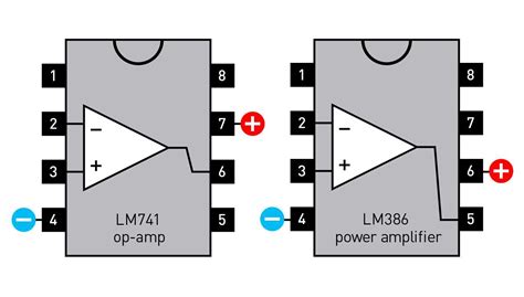 • Pin 2 (Inverting Input): This is the inverting input. When the input signal is applied here, the output signal is inverted (phase-shifted by 180 degrees) relative to the input. This is important when designing inverting amplifiers.