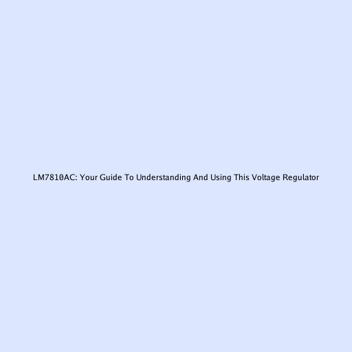LM7810AC: Your Guide To Understanding And Using This Voltage Regulator