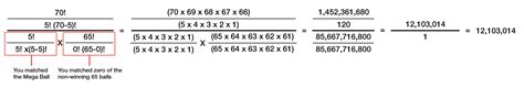 For the white balls: C(70, 5) = 70! / (5! * (70-5)!) = 70! / (5! * 65!). This equals 12,103,014 combinations.