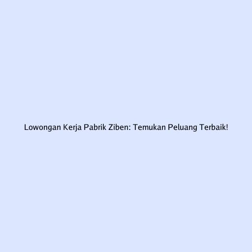 Lowongan Kerja Pabrik Ziben: Temukan Peluang Terbaik!