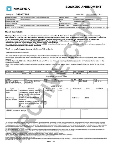 Now, let’s break down the online amendment process a bit further because it’s really your best bet, guys . When you go to Maersk.com and access your ‘My Bookings’ dashboard, look for the specific booking ID. Clicking on this will often give you a summary, and somewhere within that summary or in an action menu, you’ll find the option to ‘Amend’. Once you click ‘Amend’, you’ll be presented with a form. This form is designed to be intuitive. You’ll see sections for cargo details, container information, party details, and possibly routing or date information. For instance, if you need to change the number of pallets or the total gross weight, you’ll find fields specifically for that. You might also have options to change the container size or type, like from a 20’ Standard to a 40’ High Cube, or perhaps to a specialized container if your cargo demands it. Important note: Not all fields might be editable, especially if the booking is already too far along in its lifecycle – for example, if the container has already been loaded onto a vessel. In such cases, the system might indicate that the requested change is not possible online, and you’ll be prompted to contact customer service. When you update any field, make sure you have the correct information readily available. If you’re changing the consignee, have their full legal name and address precise. If it’s a weight change, know the exact gross weight. Before you hit the final ‘Submit’ button, there’s usually a mandatory field for ‘Reason for Amendment’. This is your chance to explain why you’re making the change. Be specific! Instead of saying ‘changed details’, say ‘Revised cargo weight due to final packing’ or ‘Consignee address updated as per client’s request’. This justification helps Maersk’s operations team understand the context and process your request more efficiently. After submission, you’ll typically receive an on-screen confirmation and an email notification. This doesn’t mean the amendment is done; it means your request has been received . Maersk will then review it. You’ll be notified of the outcome – whether it’s approved, requires further action, or if there are additional costs involved. Always monitor your email and your ‘My Bookings’ dashboard for updates . This online process is designed for speed and efficiency, so mastering it will save you a ton of time and hassle.