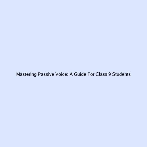 Mastering Passive Voice: A Comprehensive Guide for Class 9 Students