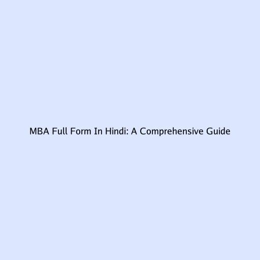MBA Full Form In Hindi: A Comprehensive Guide