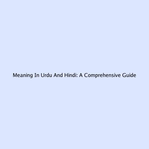 Meaning in Urdu and Hindi: A Comprehensive Guide