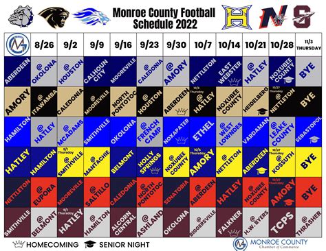 Alright guys, let’s dive into the highly anticipated Monroe football schedule for the upcoming season! Whether you’re a die-hard fan, a casual observer, or just looking for some Friday night lights action, knowing the schedule is key to planning your game-day experience. We’ve got all the deets you need right here to make sure you don’t miss a single touchdown, interception, or game-winning field goal. Get ready to mark your calendars, wear your team colors, and cheer loud for the Monroe Wildcats (or whatever your team’s mascot is – let’s assume it’s the Wildcats for now, but we’ll keep it general so it applies to any Monroe!). Knowing the Monroe football schedule is more than just looking at dates; it’s about understanding the rhythm of the season, the challenges each game presents, and the potential for epic rivalries to unfold. We’ll break down the key matchups, potential homecoming games, and those crucial district games that often decide playoff fates. Think of this as your ultimate guide to navigating the entire season, from the pre-season warm-ups to the final whistle of the regular season. We’ll also touch upon how factors like the weather can play a role and how to best prepare for game days, whether you’re tailgating or just heading to the stands. So, grab a snack, get comfy, and let’s get this football season breakdown started. We aim to provide comprehensive information, ensuring you’re always in the know about the Monroe football schedule .