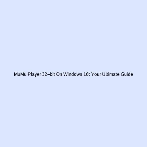 MuMu Player 32-bit on Windows 10: Your Ultimate Guide