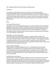 Navigating Today's World: Challenges And Opportunities