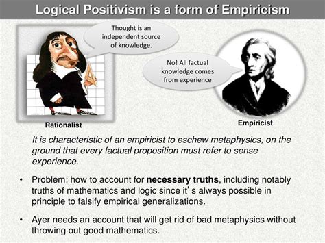 3. Rejection of Metaphysics : Metaphysics, with its abstract and often untestable claims, was a no-go zone for Logical Positivists. They wanted to stick to what could be proven.