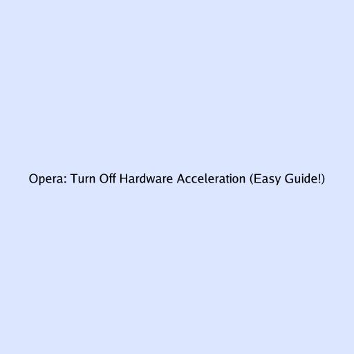 Opera: Turn Off Hardware Acceleration (Easy Guide!)