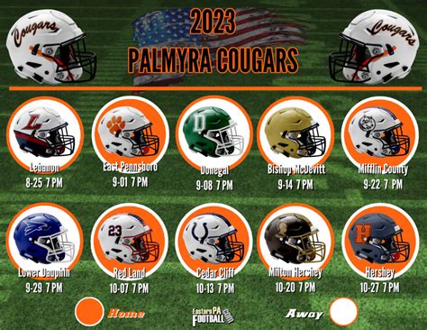 Staying up-to-date on Palmyra PA football schedules and scores is easy, thanks to a variety of resources. You can find the latest information on the Palmyra Area School District’s official website, local news outlets, and sports websites. These sources provide detailed schedules, including game times, locations, and opponent information. They also offer real-time scores, game recaps, and player statistics, ensuring that you never miss a moment of the action. Whether you’re tracking the varsity team’s progress or following the youth league games, these resources will keep you well-informed. Local newspapers and television stations often provide extensive coverage of Palmyra football, including pre-game previews, game reports, and post-game analysis. These media outlets are essential for getting the local perspective and staying connected with the community. Sports websites and apps offer comprehensive coverage, allowing you to access schedules, scores, and other information on your phone or computer. They provide real-time updates and notifications, so you can stay informed regardless of your location. The Palmyra Area School District website is a valuable resource, offering official schedules, team rosters, and news releases. It’s the go-to place for the latest information from the school and the football program. Social media platforms, such as Facebook and Twitter, are also excellent sources of information. You can follow the Palmyra Cougars’ official pages and local sports groups to receive updates, engage in discussions, and connect with other fans. These platforms allow you to stay connected with the team and the community in real-time. By utilizing these resources, you can easily stay informed about all things Palmyra football, supporting the team and being an active part of the community.