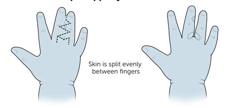 • Surgical Separation: Surgery is typically required to separate the fused digits. The timing of the surgery depends on the severity of the syndactyly and the digits involved. In general, it’s often recommended to perform the surgery before the child starts school to allow for better hand function and development. The surgical technique involves creating skin flaps to cover the separated digits and prevent them from re-fusing. Skin grafts may also be necessary in some cases, particularly when there is a shortage of skin. The surgeon will carefully plan the incisions to minimize scarring and optimize the appearance of the hand or foot.