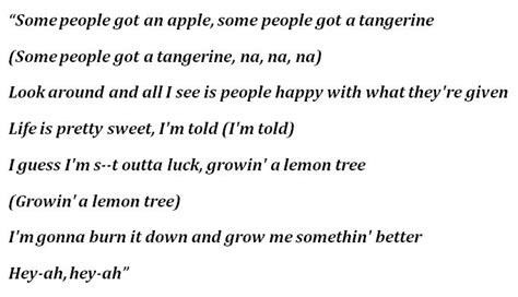 Alright guys, let’s get into the nitty-gritty of the lyrics themselves. What is Post Malone trying to tell us with “Lemon Tree”? Without dissecting every single line here (you should definitely watch the Post Malone Lemon Tree official lyric video for the full effect!), we can talk about the overarching themes. Often, Post Malone uses metaphors and imagery to convey his feelings, and “Lemon Tree” seems to be no different. A lemon tree, for example, can symbolize many things – perhaps sweetness tinged with sourness, growth, or even something that provides shade and comfort, but with a twist. Is he talking about a relationship that’s gone sour? Or maybe about finding beauty and resilience in difficult circumstances? The official lyric video will help you piece this together. As the words flow, you’ll get a clearer picture of the story Post Malone is weaving. Is it about dealing with fame, personal demons, or just the complexities of everyday life? His lyrics often have layers, and it’s part of the fun to unpack them. You might find yourself relating to a specific line or a particular feeling he expresses. That’s the power of good songwriting, and Post Malone is a master at it. The lyric video acts as your guide, highlighting key phrases and giving you time to absorb the meaning. It’s an invitation to reflect on your own experiences and how they might mirror the themes in “Lemon Tree.” So, as you watch, consider your own interpretations – what does the song mean to you ?
