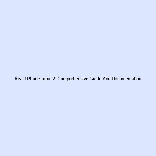 React Phone Input 2: Comprehensive Guide And Documentation