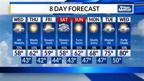 Daily Forecasts: When you check the daily forecast, you’re usually looking at the next 24 to 48 hours. This is where you’ll find the most detailed information. For example, you might see that tomorrow in Rochester will start off chilly with a morning low of 40°F, warming up to a comfortable high of 65°F in the afternoon with partly cloudy skies. The chance of precipitation might be listed as 20%, meaning a stray shower is possible but unlikely. Wind speeds are also important – a light breeze can make a 65°F day feel cooler, while stronger winds might be a sign of an approaching weather system. Pay attention to the timing of these changes; sometimes a cold front moves through in the evening, bringing a sharp drop in temperature overnight. These daily updates are your best bet for immediate planning, ensuring you grab that umbrella or leave the heavy coat at home.