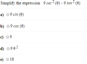 Simplify 9 Sec^2(a) - 9 Tan^2(a)