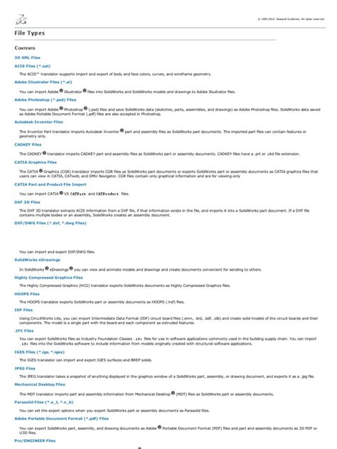 While not strictly a CAD file, .pdf (Portable Document Format) is a ubiquitous format for sharing your 2D drawings and even 3D models (with the right viewers). You can export your SolidWorks drawings as PDFs, making them easy to view, print, and distribute without requiring the recipient to have SolidWorks or any special software. For 3D PDFs, you can embed interactive 3D models that viewers can rotate, zoom, and even take measurements from, which is fantastic for design reviews and client presentations.